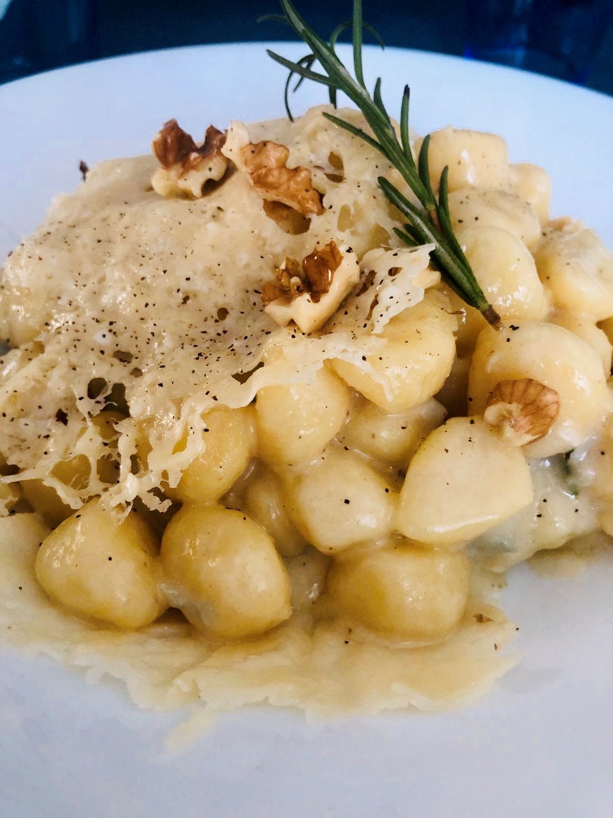 Gnocchi cremosi al formaggio con cialda di parmigiano